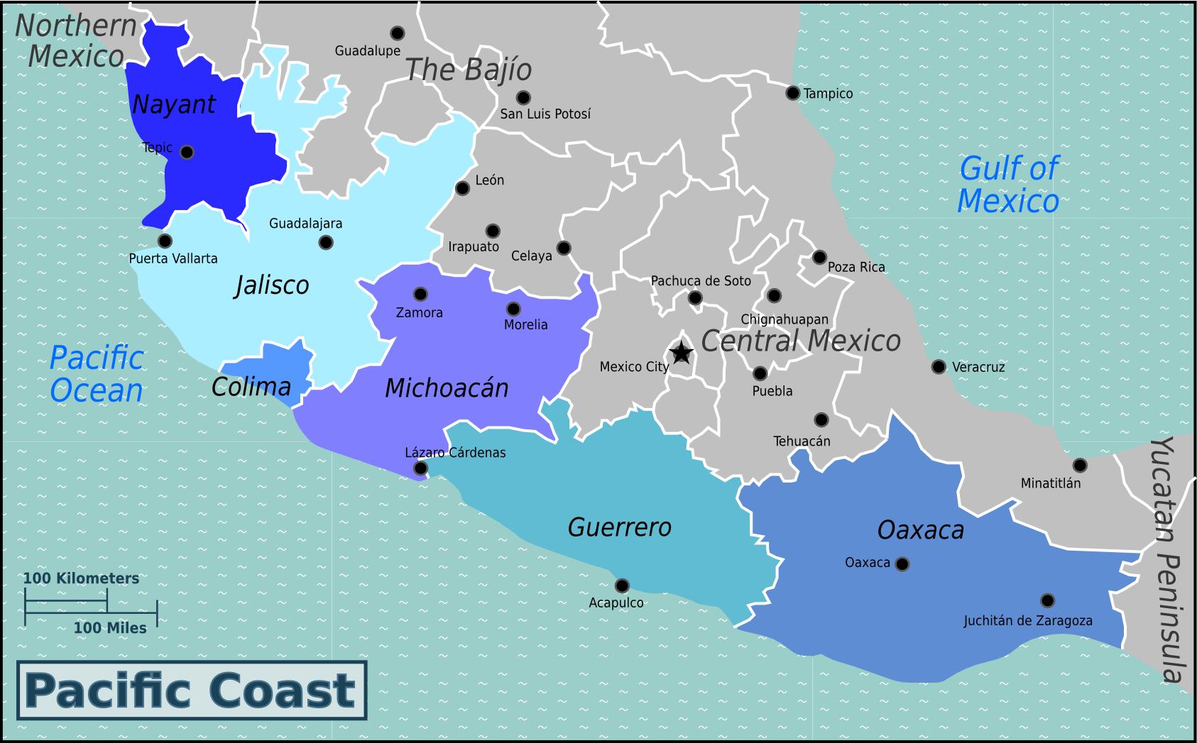 Mexico pantai pasifik peta